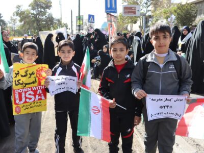 دانش آموزان قزوینی همراه با پویش “به ساز مدرسه، بساز مدرسه” در مراسم روز 13آبان